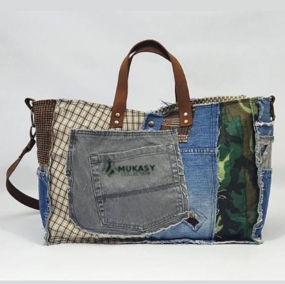 Make a bold style statement with the MUKASY Patchwork Denim Travel Bag, a unique fusion of rugged charm and eco-conscious fashion. Expertly handcrafted from upcycled denim, flannel, and camouflage fabrics, this one-of-a-kind bag showcases a vibrant patchwork design that’s both stylish and sustainable. Featuring durable brown leather handles, a detachable shoulder strap, and secure zipper closure, this versatile bag is perfect for weekend getaways, gym sessions, or daily use. The spacious interior offers ample room for all your essentials, while the prominent front pocket, repurposed from a classic jean, adds both character and functionality. Whether you're a trendsetter or a conscious shopper, the MUKASY travel bag blends fashion, function, and sustainability in one standout accessory. Key Features: Made from upcycled denim, flannel, and camouflage fabric Hand-stitched patchwork design for a rustic, artisanal look Leather handles and adjustable shoulder strap for comfort Spacious interior with practical external pocket