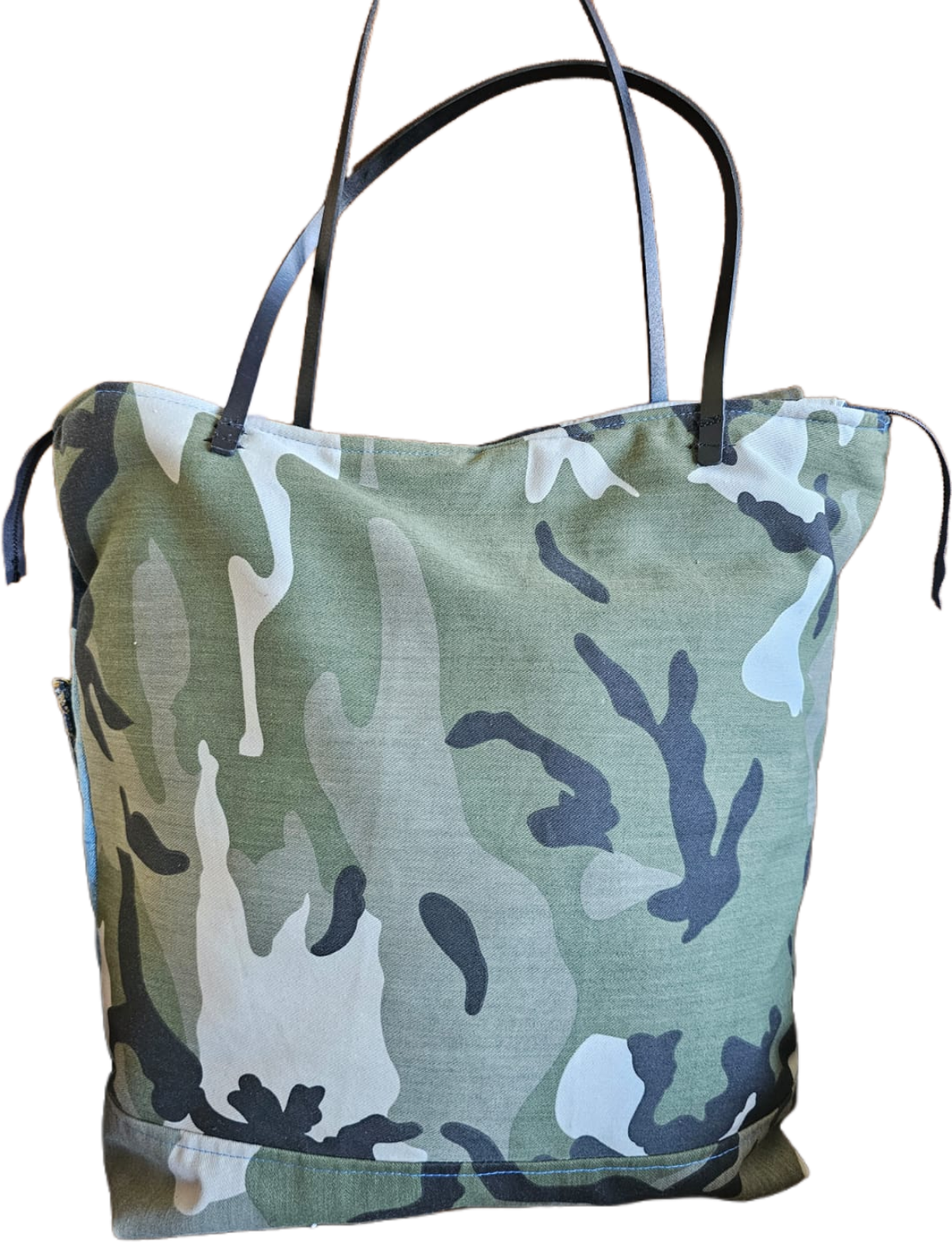 Elevate your everyday style with this rugged yet stylish Camouflage Canvas Tote Bag. Crafted from durable canvas and featuring a classic woodland camo print, this tote combines urban edge with practical functionality. The sleek black leather handles add a touch of sophistication and durability, making it suitable for everything from casual outings to daily commutes. Designed with ample space to carry your essentials — whether it's groceries, books, or gym gear — this tote is both versatile and fashion-forward. Reinforced stitching ensures long-lasting use, while the soft yet sturdy fabric maintains its shape without being too rigid. Key Features: Material: Heavy-duty canvas with genuine leather handles Design: Classic camouflage print for a bold, adventurous look Capacity: Spacious interior for everyday essentials Comfort: Lightweight and easy to carry on the shoulder or by hand